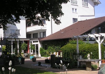- Schöne Gartenanlage im Innenhof mit Hand- und Fußkneippbecken