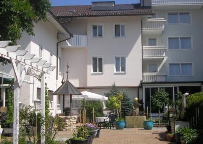 Zu den vielen Vorzügen und Annehmlichkeiten, die Ihnen unser Haus bietet, gehören echte Leistung und Allgäuer Gastlichkeit. Sie finden uns in der reizvollen Umgebung der wiesenreichen Hügellandschaft der Allgäuer Voralpen. Direkt im Zentrum der kleinen Kreisstadt gelegen mit einer wunderschönen, mediterranen Gartenanlage mit Kräutergärtchen, Wasserspielen, Hand- und Fusskneippbecken.