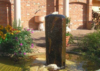 Wenn die Dämmerung hereinbricht wird unser Garten mit einem dezenten Licht beleuchtet. Alte und neue Steine, handgesucht und gefunden, bearbeitet zu einem kleinen Weihwasserbecken, verarbeitet zu einer Mauer verleihen unserem Garten mit mediterranem Flair eine besondere Note.